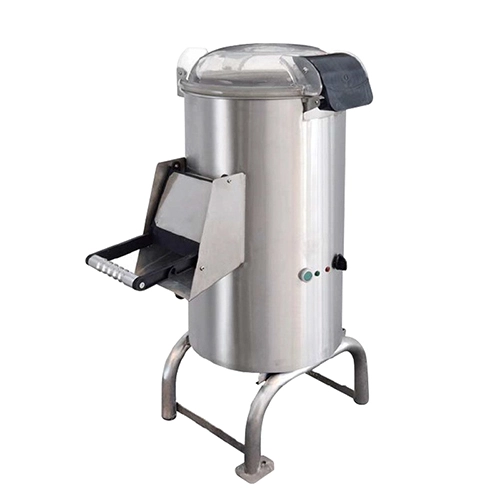 В этой коммерческой картофелечистке используется механизм с электроприводом и внутренними шероховатыми роликами или щетками. Картофель неоднократно подбрасывается вверх и вниз под действием центробежной силы высокоскоростного вращения, испытывая всестороннее трение о шероховатые поверхности внутренней стенки и дна ролика, а также о другой картофель. Это равномерное и непрерывное трение быстро и бережно снимает кожуру с картофеля.